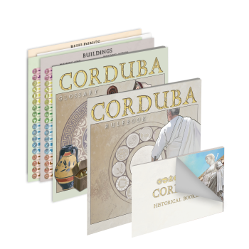 Ihr repräsentiert eine dieser Familien. Corduba ist ein Worker-Placement-Spiel auf Expertenniveau mit Plättchenlegeaspekt, in dem bis zu 4 Spieler um Einfluss im Senat wetteifern. Ihr müsst den Wiederaufbau der Stadt planen, indem ihr Ressourcen, Arbeiter und Spezialisten unter dem wachsamen Auge Roms verwaltet. Je größer die Stadt wird, desto mehr Aktionen stehen euch zur Verfügung, die euch wiederum mehr und mehr Strategien für euren Sieg ermöglichen. Plant sorgsam, entwickelt euer Spielertableau, erfüllt die Forderungen Roms am Ende jeder Dekade und werdet der Würdenträger, den Corduba braucht.