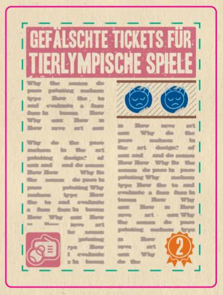 Sobald ihr Artikel, Fotos und Werbung gesammelt habt, müsst ihr die Seite gestalten. Habt ihr genug Plättchen, um die Seite zu füllen, aber nicht so viele, dass ihr Inhalte streichen müsst? Im Verlauf von 3 hektischen Tagen stellt ihr eure Fähigkeiten auf die Probe. Ihr wollt der beste Redakteur von Disteldorf werden!